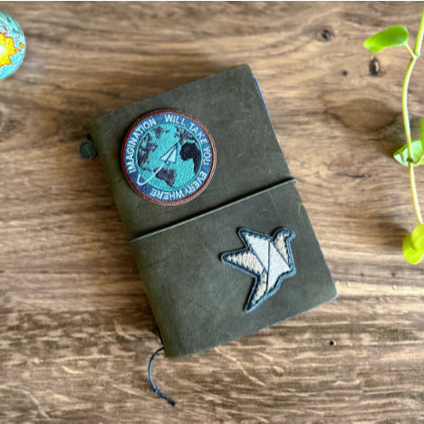 You can use the self-adhesive back to add it to a hard surface OR sew it on your bags, pouches, jackets, and Traveler's Notebooks, just like any other patches.