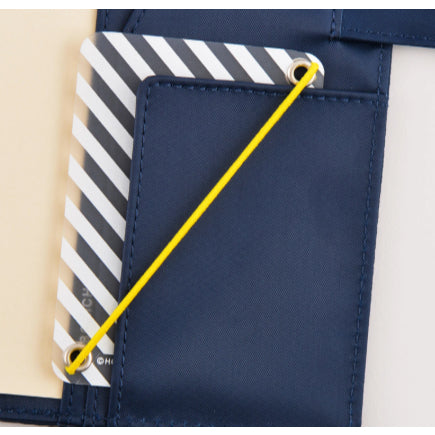This is a special bookmark that you simply affix to the interior of any classic-style Hobonichi Cover with outer pen holders. The Page Keeper automatically flips along with your page-turning and stays on the page you last opened using a rubber band.