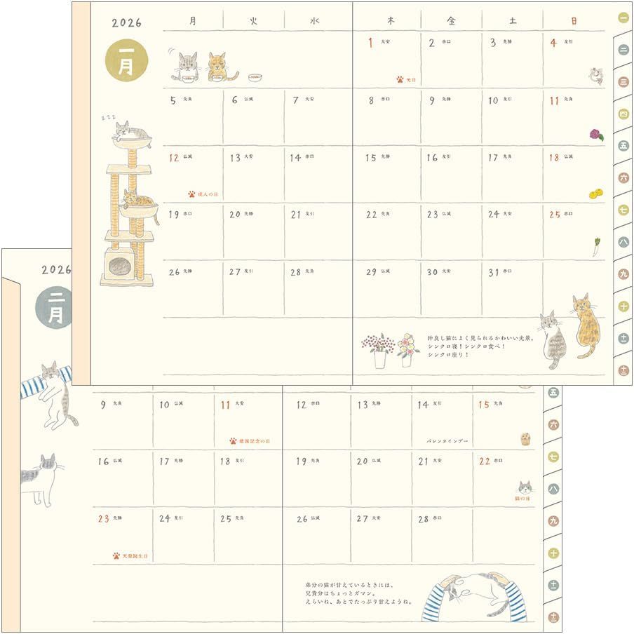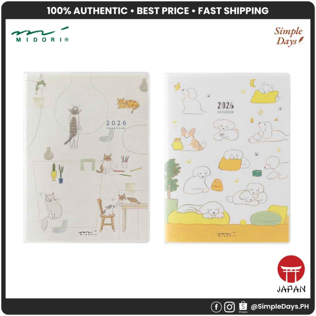 Midori 2026 POCKET Diary (A6) - Dog / Cat - Weekly Horizontal Planner Notebook w/ Transparent Cover