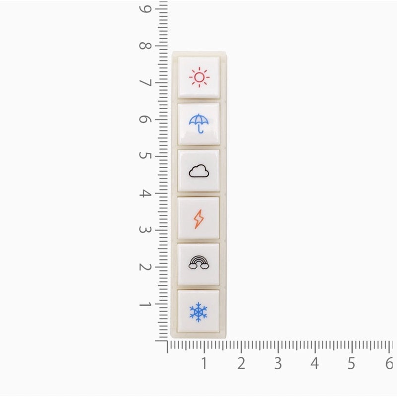 Each Pochitto6 Push-button Stamp set contains 6 independent self-inking icon patterns. The stamped patterns are crisp and sharp, and these stamps are very portable and extremely easy to use. Choose from a variety of patterns to suit your daily routine.