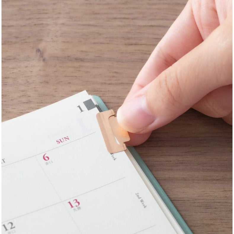 Made of stainless steel and copper with a thickness of only 0.006 inch (0.15 mm) to minimize page bulge when clipped on, so it won't get in the way when writing on the notebook. Also, the removable clip allows you to use it again and again for easy moving.