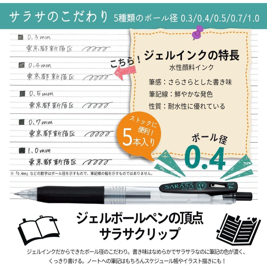 Zebra Sarasa Clip BLUE BLACK Gel Ball Pen 0.3 0.4 0.5 0.7 1.0 mm